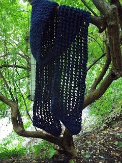 The blue duvet and sham was picked up on clearance from Target; part of the Shabby- Chic line, for $24. The throw pillow is covered with an old button down shirt from my closet that I wasn't wearing any more that just happened to match the flowers. The shelf with the books is an old orphaned drawer that I picked out of the garage of my last residence before we moved. I sanded it, primed and painted it and nailed a hanging bracket under the lip of the drawer front.